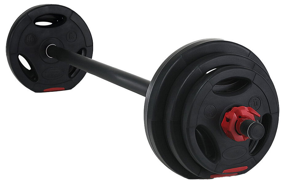 Súčasťou setu je hriadeľ s dĺžkou 140 cm, šesť cementových kotúčov v odolnom plastovom puzdre NCP a dva rýchlouzávery, ktoré umožňujú rýchlu a bezpečnú výmenu záťaže. Povrch kotúčov chráni podlahu, tlmí hluk a ich ergonomické úchopy uľahčujú manipuláciu.