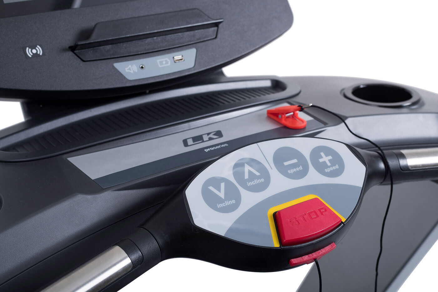 - Měřené hodnoty Spálené kalórie, Tep srdca, Vzdialenosť, Signalizácia prekročenia tepu, Čas behu, Rýchlosť behu, Sklon pásu