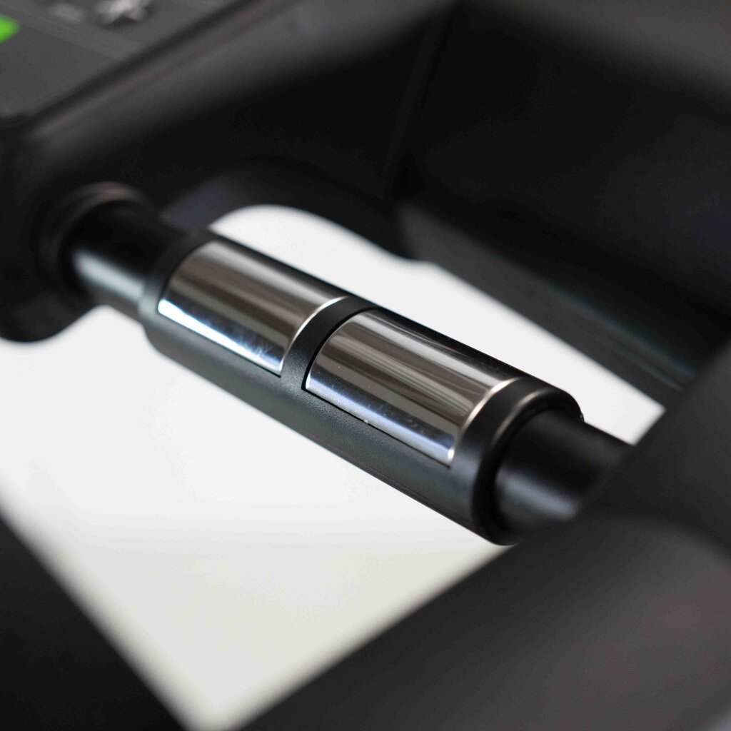BH Fitness RS1200TFT je vybaven stabilními madly, s integrovanými dlaňovými senzory pro měření tepové frekvence, v madlech jsou zabudovány i dotykové ovladače rychlosti a sklonu.