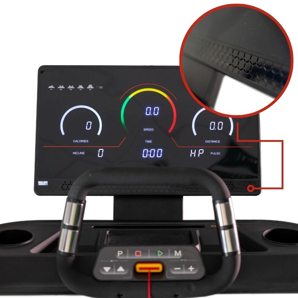 Ovládacia konzola s LED displejom zobrazuje všetky dôležité tréningové údaje vrátane rýchlosti, sklonu, času, vzdialenosti, spálených kalórií a tepovej frekvencie. Pre pohodlné ovládanie sú k dispozícii rýchle voľby rýchlosti aj sklonu priamo na rukovätiach. Vstavané reproduktory a bezdrôtové nabíjanie telefónu spríjemnia tréning počúvaním obľúbenej hudby či používaním fitness aplikácií.
