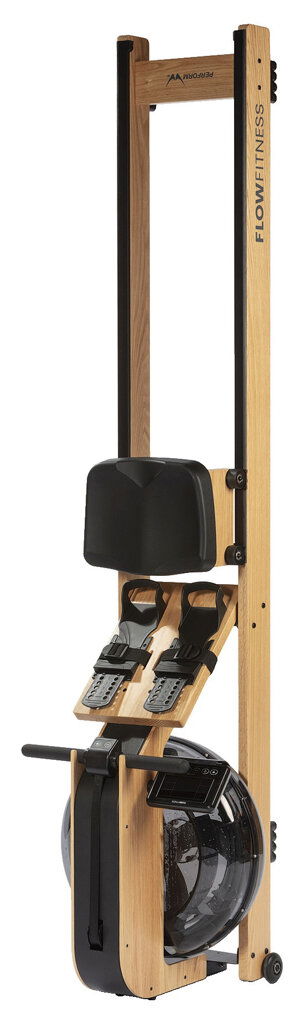 Trenažér FLOW Fitness PERFORM W9i Dub patrí medzi veslá s odporom vytváraným vodou. Úrovne odporu sú vyznačené na nádrži s vodou. Týmto spôsobom máte vždy výhľad na nastavený odporu. Profesionálne pedále sú výškovo nastaviteľné a nohy sú zafixované pomocou remienkov.