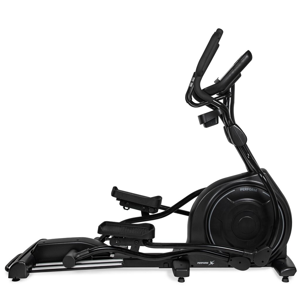Eliptický trenažér indukčný, s programami stredové uloženie aj kĺbové spoje s ložiskami dĺžka kroku 51 cm, nastaviteľný sklon pedálov systém zotrvačníka 30 kg, LCD displej nosnosť 150 kg, záruka 3+10 rokov, servis doma