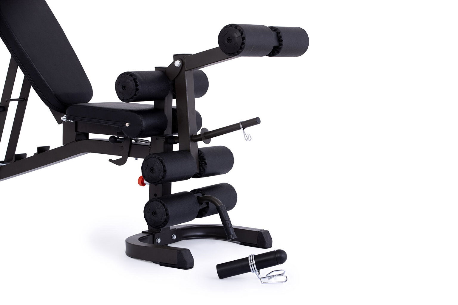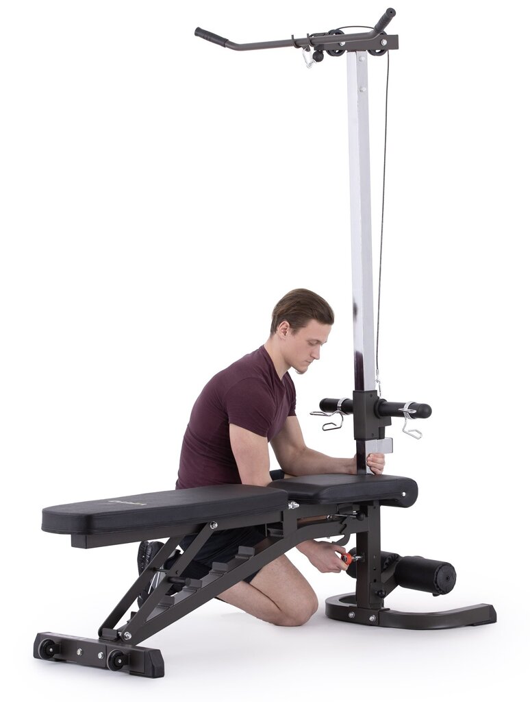 multifunkčná lavica s kopačom, bicepsovou opierkou a kladkou nosnosť lavice 250 kg zarážka na nohy opierka polohovateľná do 7 polôh záruka 2 roky