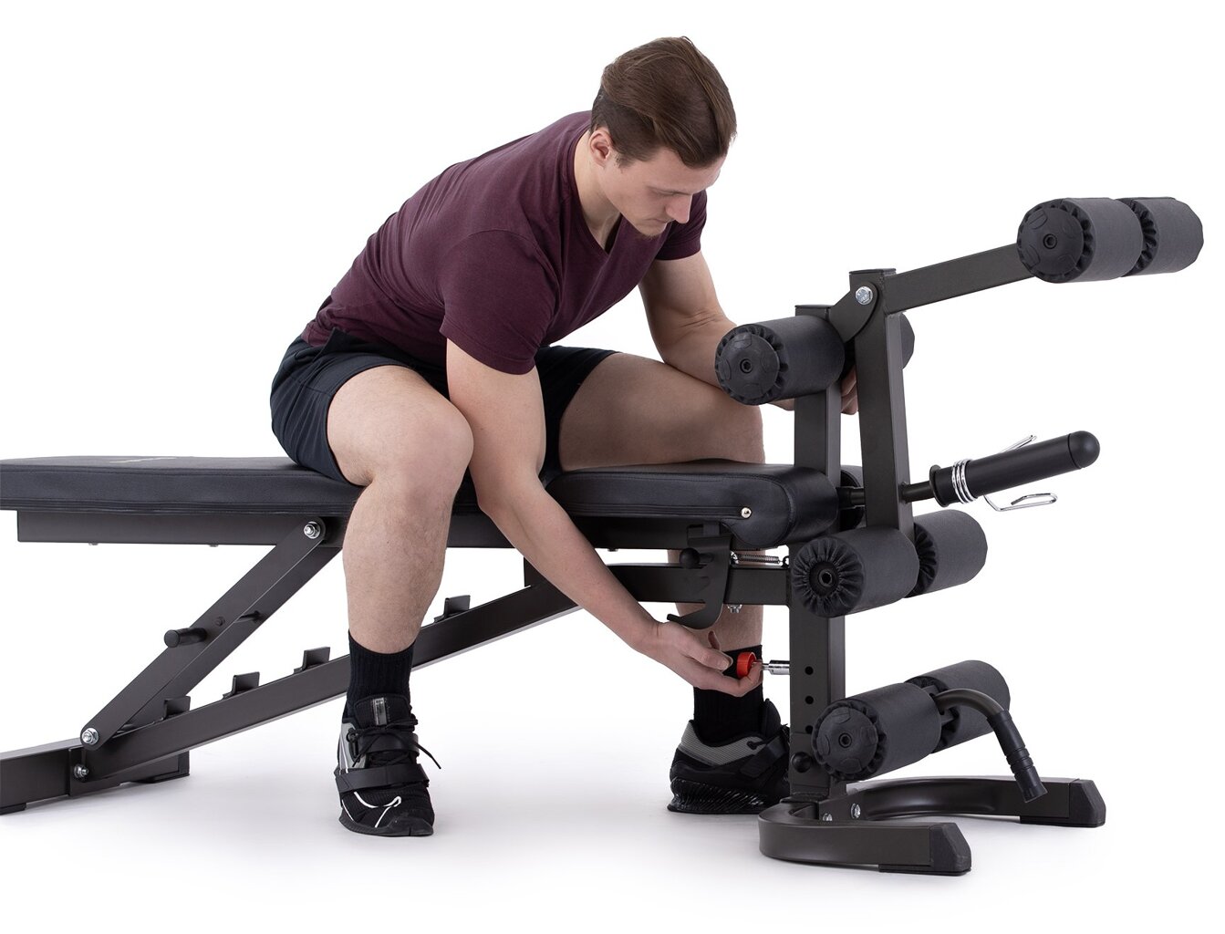 - praktické polohovatelné opěrky pro nohy využijete při negativním sklonu lavice