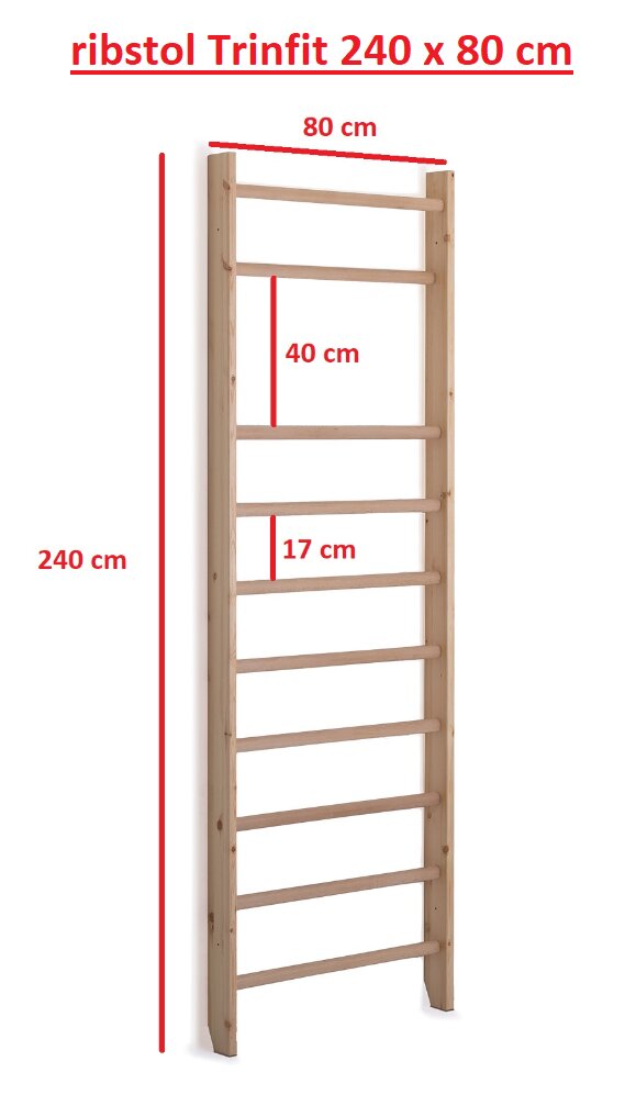 Ribstol TRINFIT Komfort sú kvalitné drevené rebriny českej výroby s jednoduchým dizajnom vhodné do každej domácnosti. Stojany sú vyrobené z borovicového dreva, ktoré sa svojimi vlastnosťami skvele hodí pre rebriny. Oválne priečky s rozmermi 30x35 mm sú z bukového dreva.