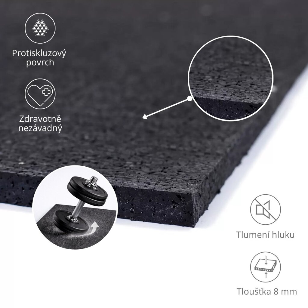Športová gumová podlaha do fitness PROFI CF 8 mm / čierna