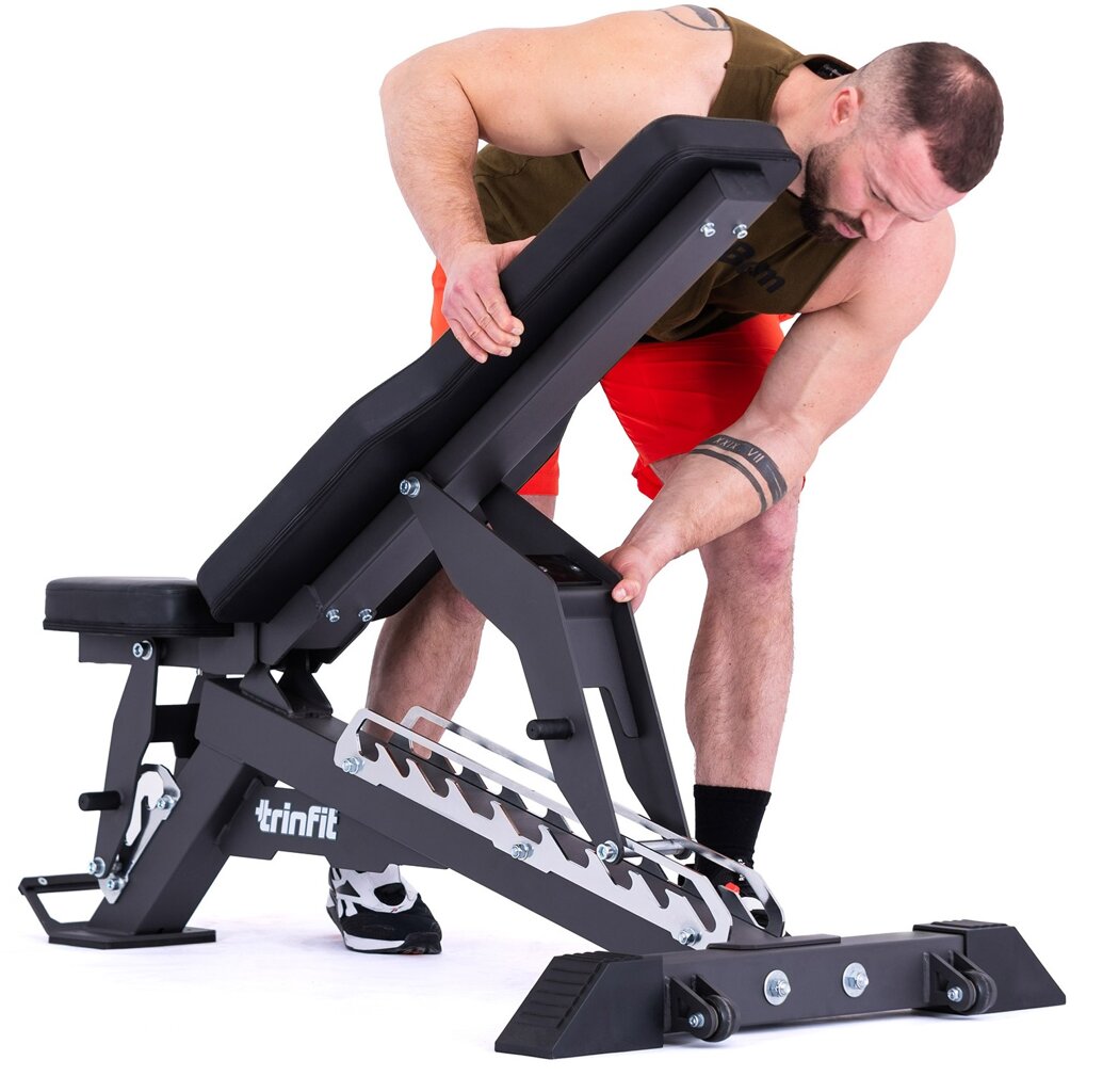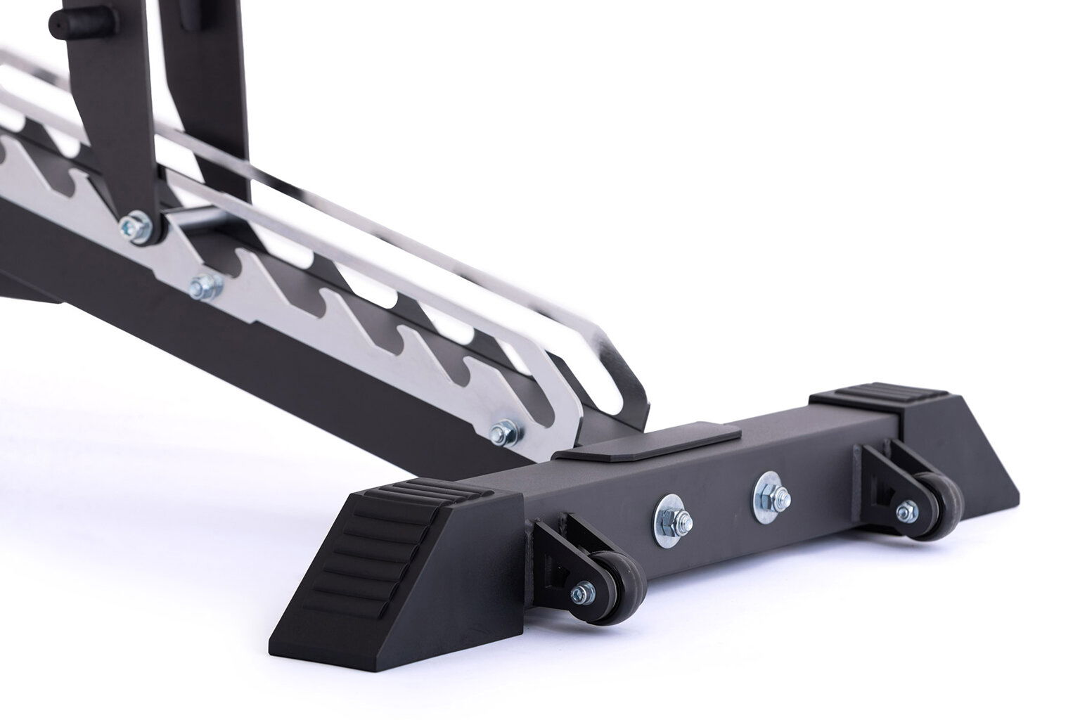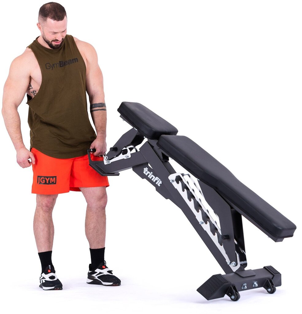 Posilňovaciu lavicu TRINFIT Bench L10 Pro je možné kombinovať s činkovými stojanmi, posilňovacou klietkou či len sadou jednoručných činiek. Vyberte si zo širokej ponuky príslušenstva značky TRINFIT a vytvorte si zostavu spĺňajúcu vaše nároky. Jednoduché, rýchle a bezpečné polohovanie umožňuje jednoduchú zmenu polohy lavice. Vďaka transportným kolieskam a úchopovej rukoväti je možné lavicu ľahko premiestniť.