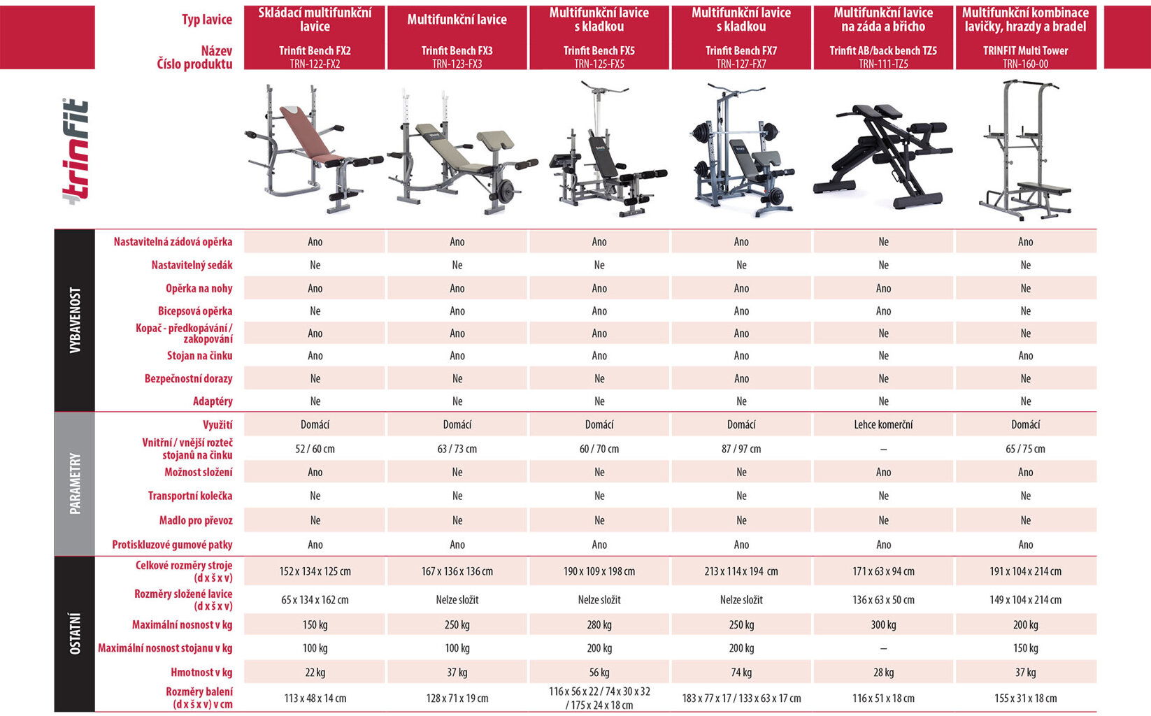- univerzálna polohovacia lavica, sklon opierky: 9 polôh v rozsahu 0 až 90 stupňov, sklon sedadla: 3 polohy v rozsahu 0 až 30 stupňov