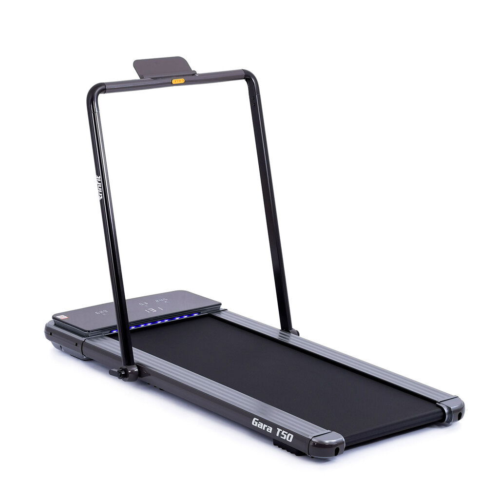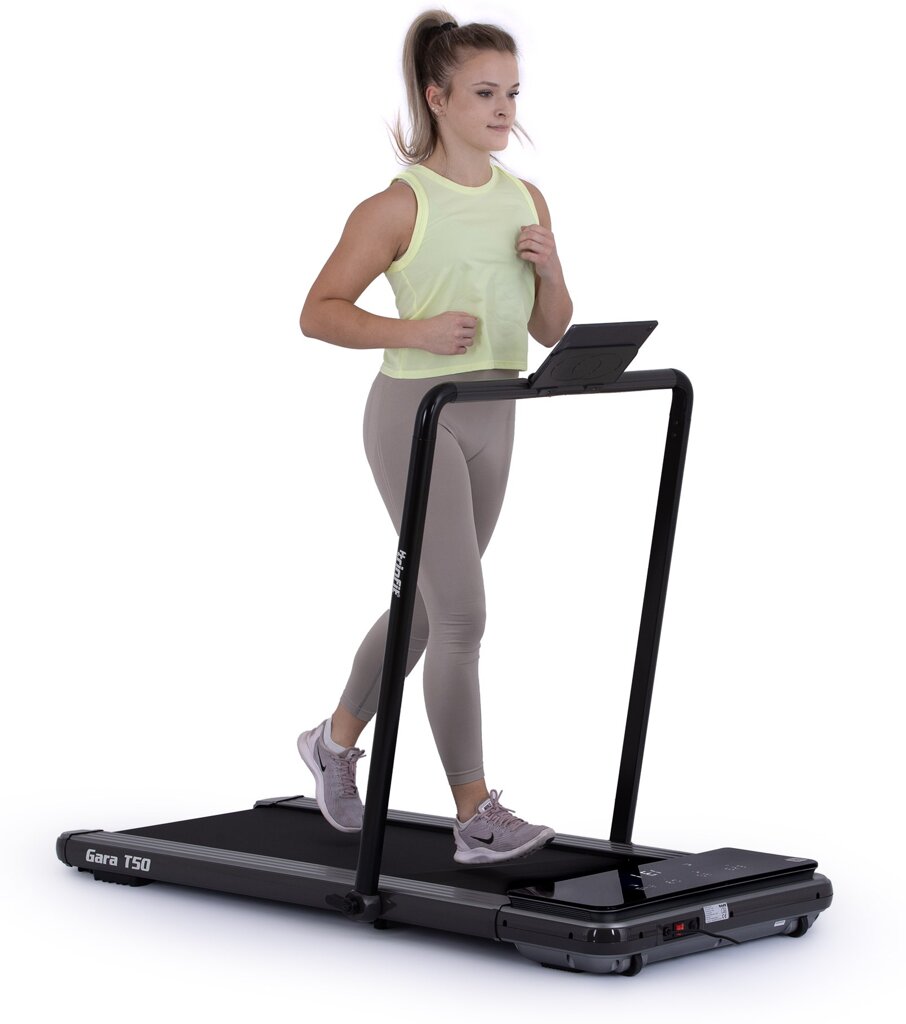 Ak hľadáte veľmi skladný a kvalitný bežecký pás, ktorý vám umožní príjemný zážitok z chôdze, alebo behu v pohodlí domova, potom sa Trinfit Gara T50 stane vašim ideálnym spoločníkom pre pravidelné tréningy. Nemusíte byť nijako viazaní na vonkajšom prostredí a ani na otváraciu dobu fitcentier. Vďaka starostlivo vyvinutej konštrukcii a kvalitnému odpruženiu bežeckej plochy "Ortho-2D" minimalizuje zaťaženie kĺbov a väzov a vy si môžete užiť príjemný a prirodzený pocit chôdze napríklad u vás v obývačke. Pás je navyše opatrený systémom odhlučnenia "VibroSilence", ktorý obmedzuje vibrácie a prenos došľapov do podlahy. To zaručuje znateľne tichší chod oproti iným modelom tejto cenovej kategórie.