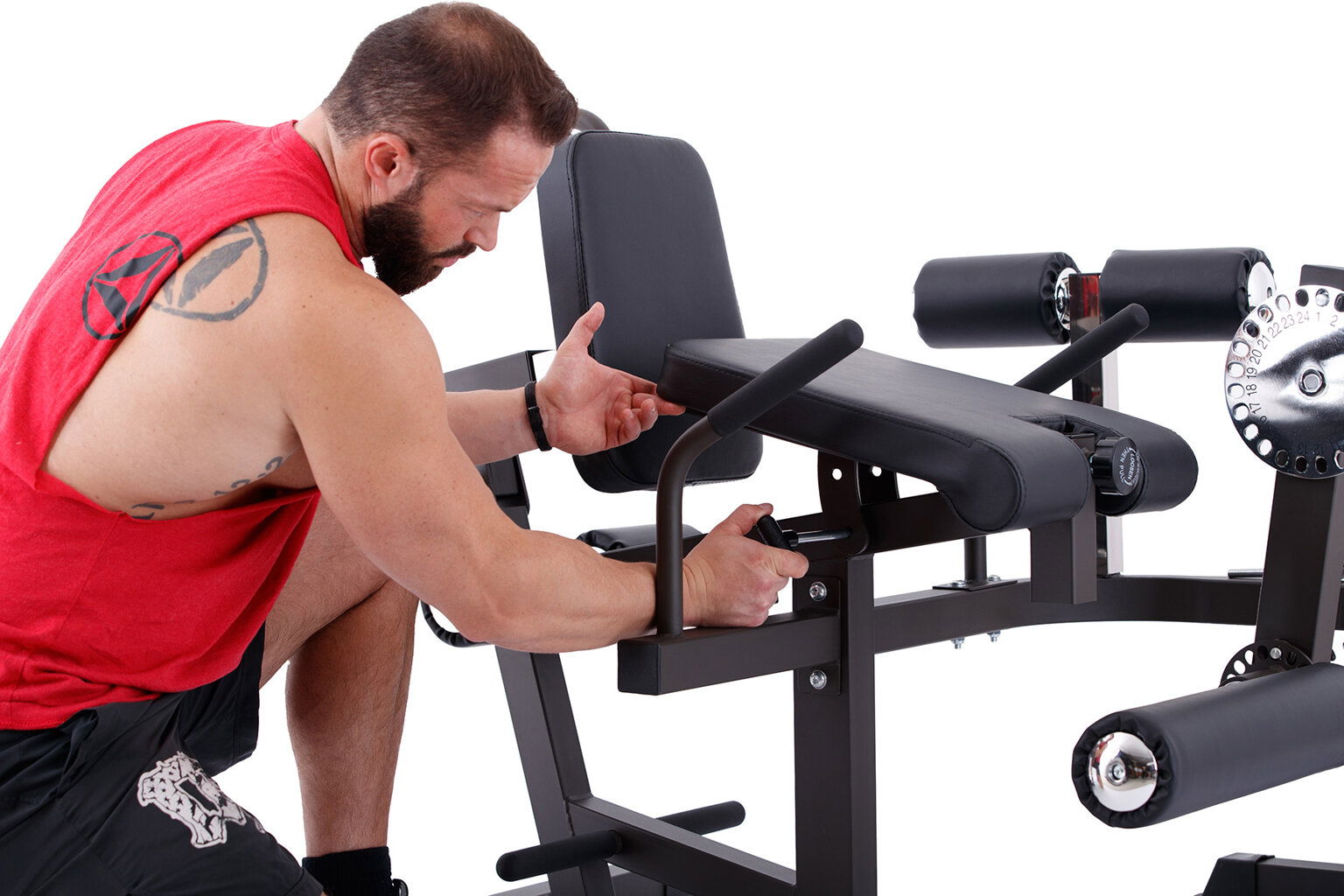 Nielen, že uhol kopača je nastaviteľný až do 24 polôh, ale aj samotný valec na nohy je nastaviteľný do 18 polôh. To všetko, aby ste mohli efektívne precvičiť prednú časť stehien, zadnú časť stehien, brucho a chrbát!