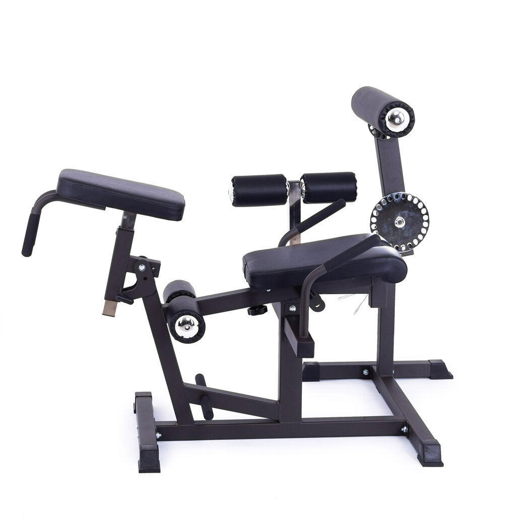 Posilňovací stroj na nohy, brucho a chrbát variabilné nastavenie posedu a valcov robustná oceľová konštrukcia záťaž formou kotúčov 50 mm nosnosť 150 + 150 kg záruka 3 roky + 5 rokov na rám