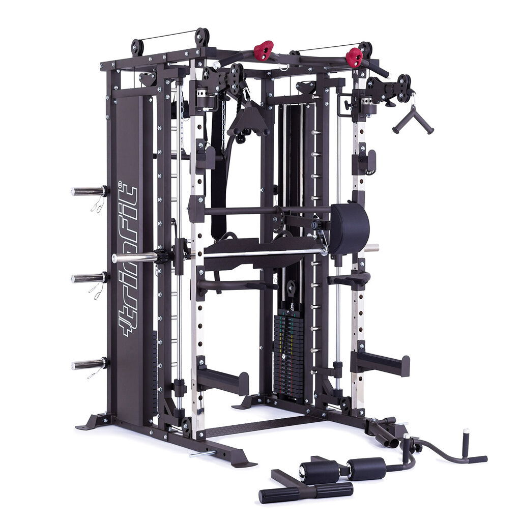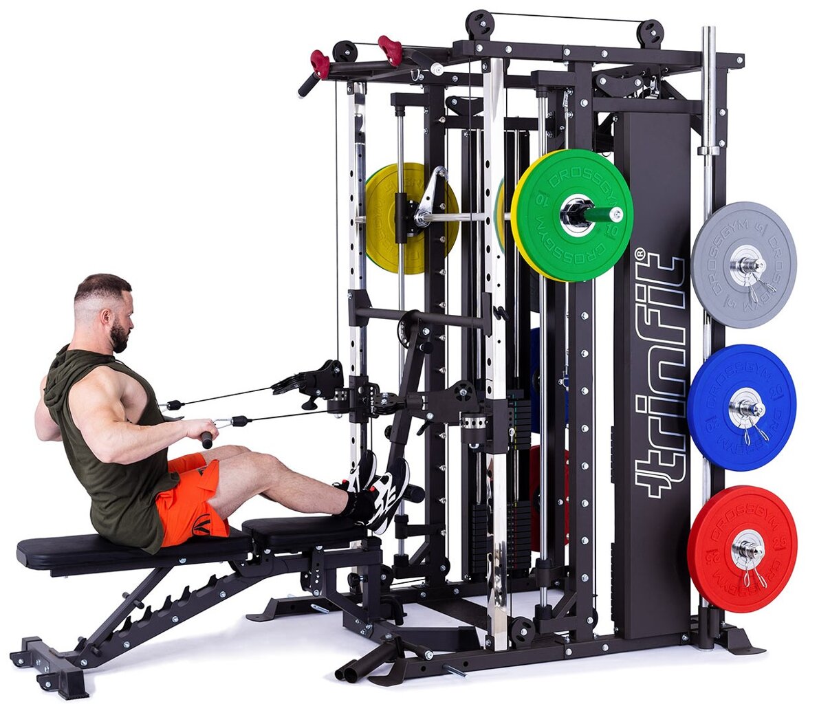 Multipress TRINFIT Multi Smith CX80 ponúka dva zásobníky záťaže o váhe 90 kg (spolu teda až 180 kg závažia!). Zároveň ponúka nepreberné množstvo druhov cvičení formou tricepsových kľukov, tlakov na prsia, ramená, kladiek atď. Dve protismerné kladky je možné polohovať v 18 výškových polohách, môžete tak perfektne precvičiť celé telo.