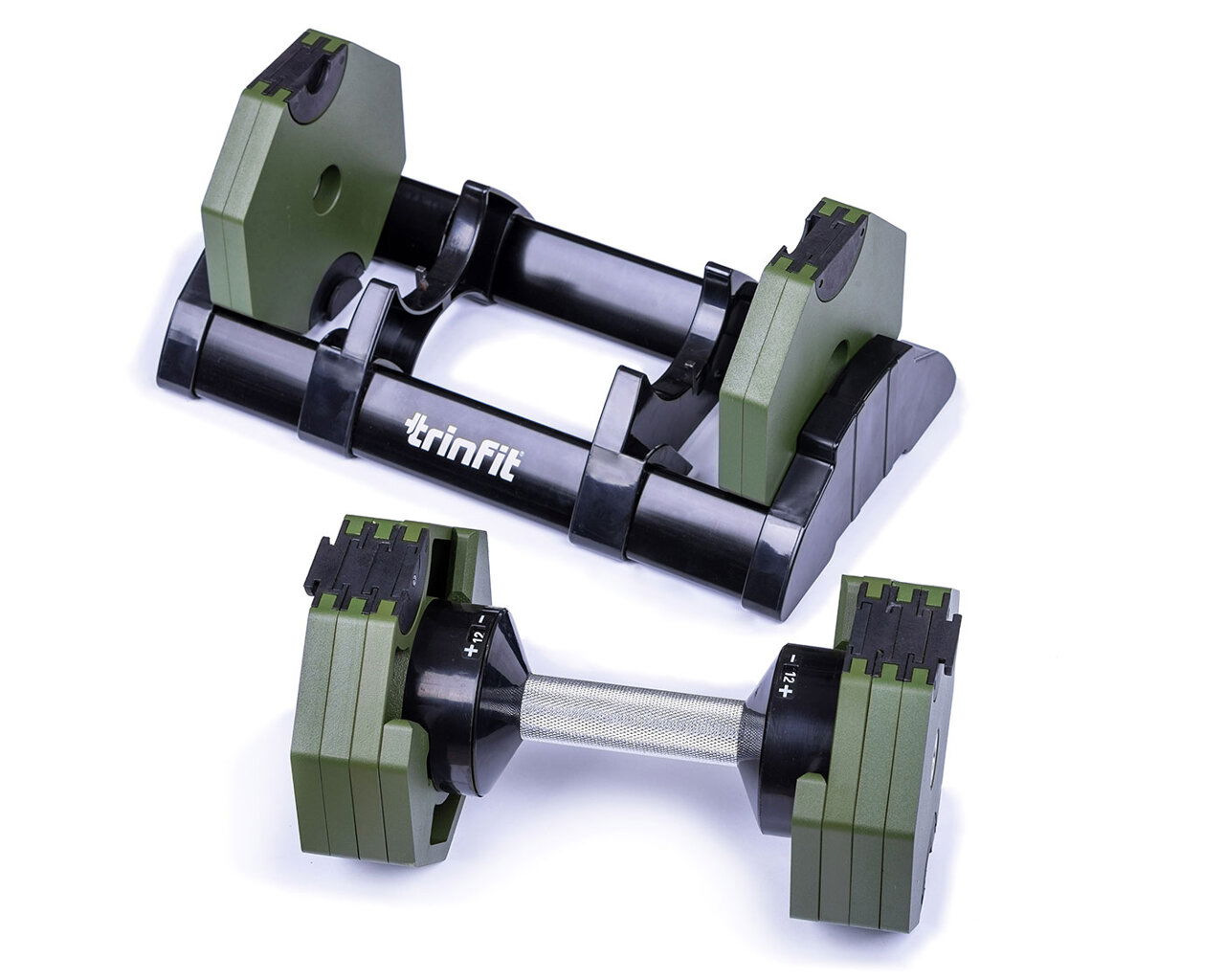 Nastaviteľná činka TRINFIT OctaBlock s praktickým riešením úpravy záťaže.Pomocou praktického nakladacieho/vykladacieho systému nebola zmena hmotnosti nikdy jednoduchšia: nakladacia činka funguje na princípe diskov (závaží) a otočnom koliesku, na ktorom si nastavíte požadovanú váhu a vybrané závažie sa vám na činku „pricvakne“. Výhoda tohto systému je veľmi rýchla voľba závažia a ušetrenia priestoru.