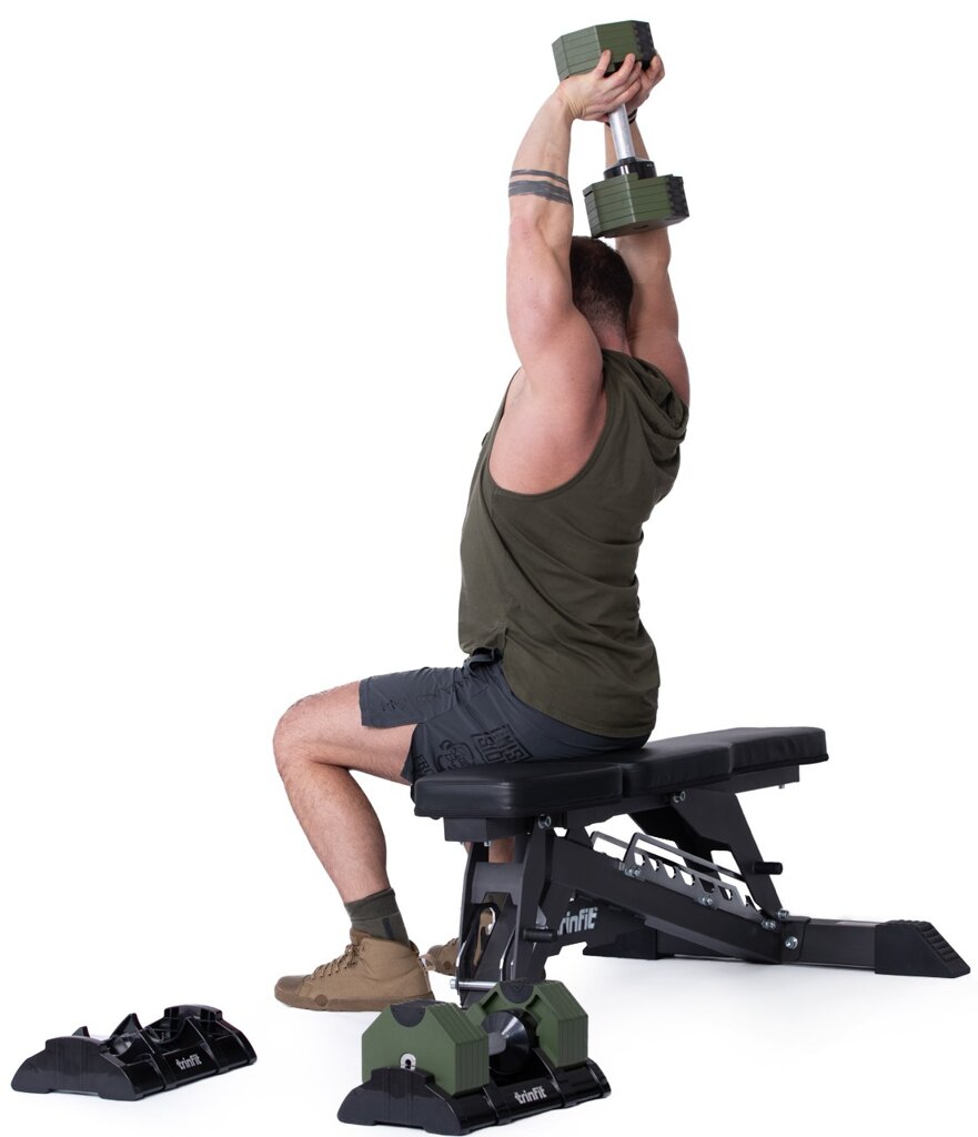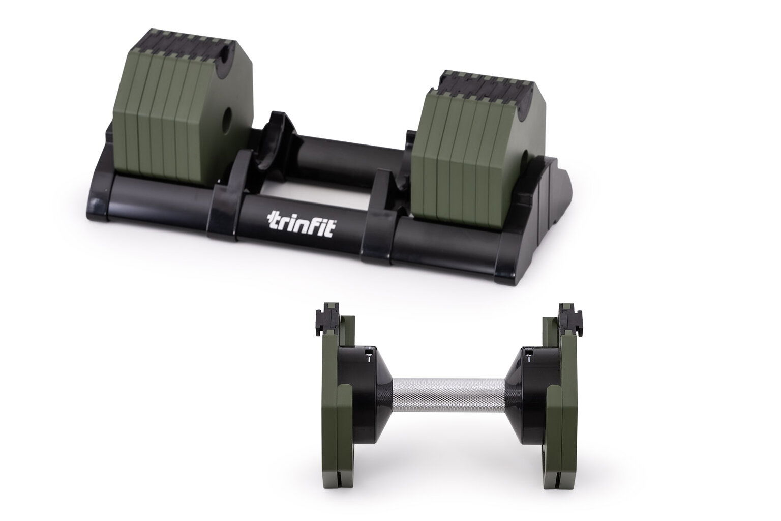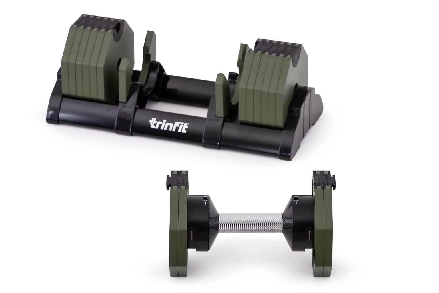 Nastaviteľná činka TRINFIT OctaBlock s praktickým riešením úpravy záťaže. Pomocou praktického nakladacieho/vykládacieho systému nebola zmena hmotnosti nikdy jednoduchšia: nakladacia činka funguje na princípe diskov (závaží) a otočného kolieska, na ktorom si nastavíte požadovanú váhu. Vybrané závažie sa na činku „pricvakne“. Výhodou tohto systému je veľmi rýchly výber závažia a úspora priestoru.