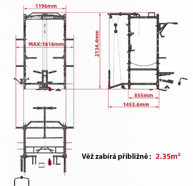 - Výška stroja 214 cm
