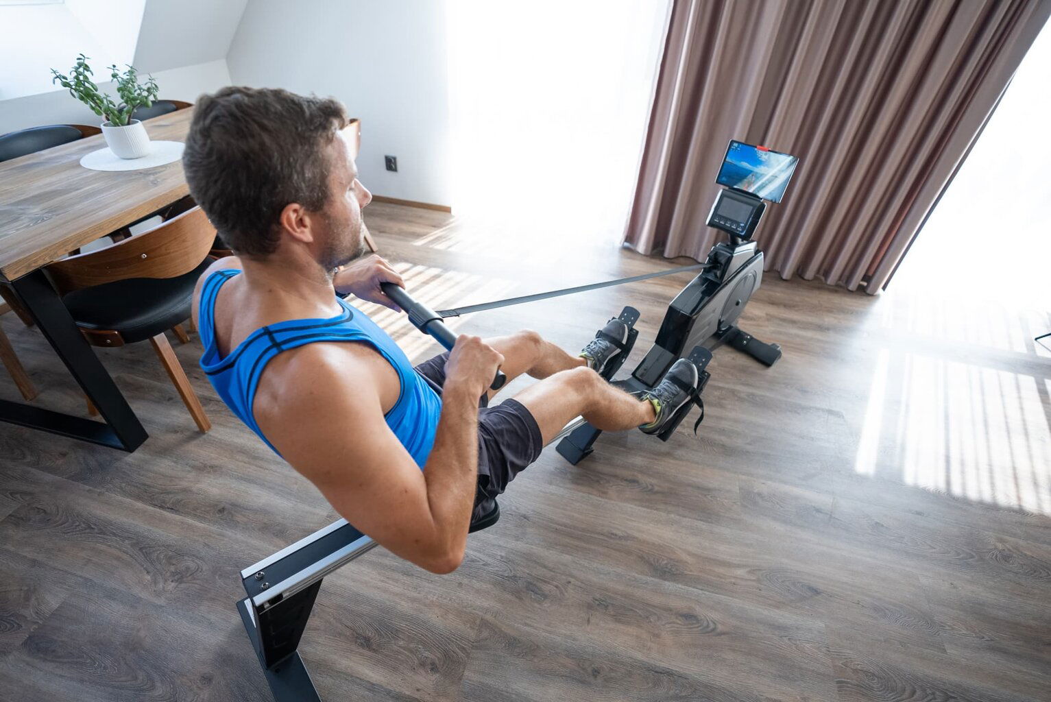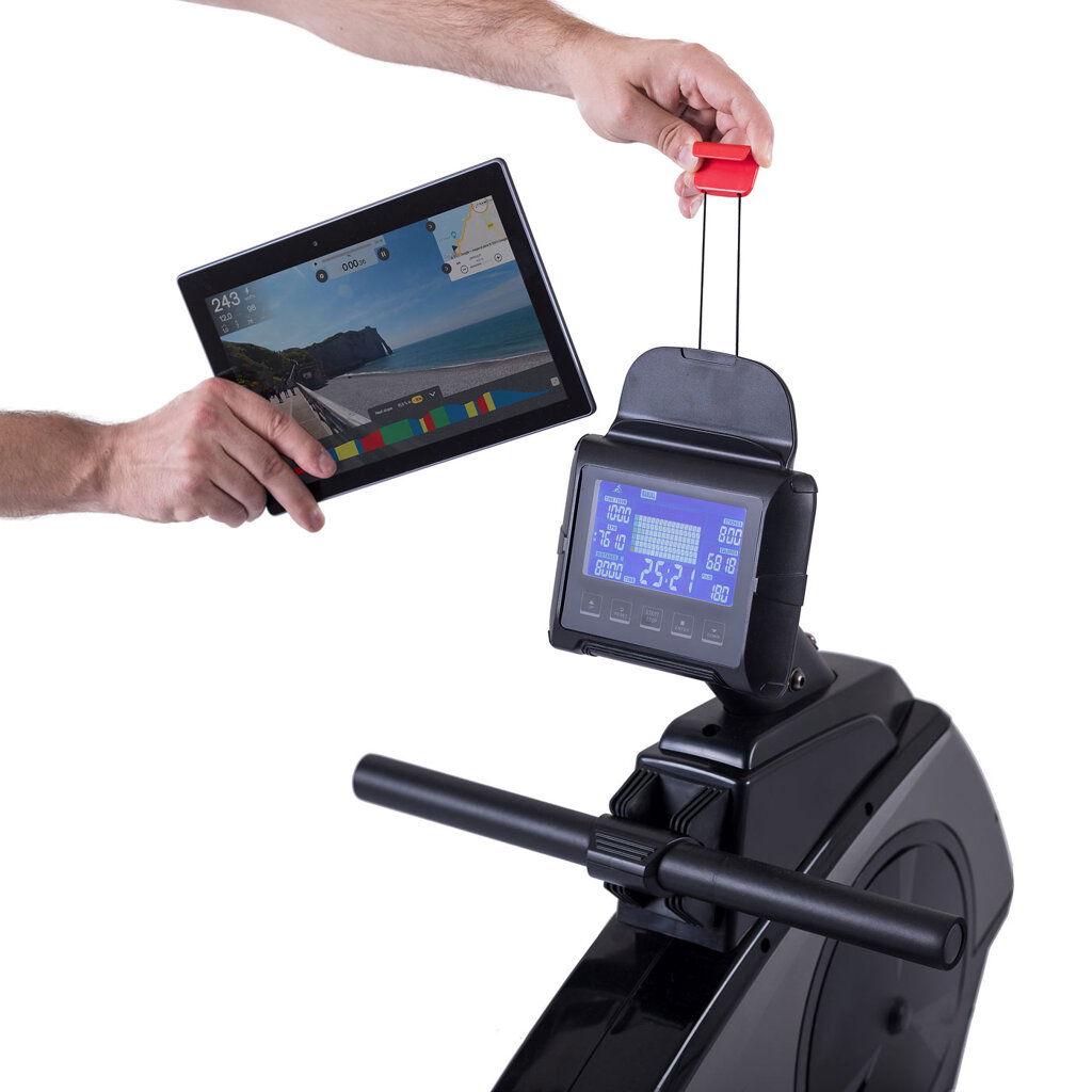 - Vďaka praktickému držiaku na tablet či smartphone si môžete pri veslovaní púšťať svoju obľúbenú hudbu, či YouTube kanál, alebo využívať tréningové aplikácie - Kinomap, MyHomeFIT, iConsole+