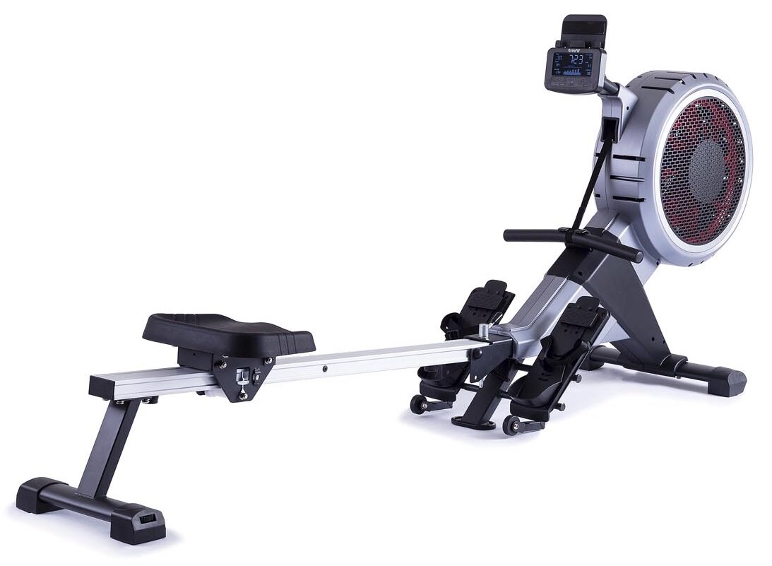 Veslovací trenažér vzducho-magnetický, s programami profesionálne nastaviteľné nášľapy inverzne podsvietený LCD displej, možnosť sklopenia bluetooth, komunikácia s aplikáciami nosnosť 130 kg, záruka 3+10 rokov, servis doma