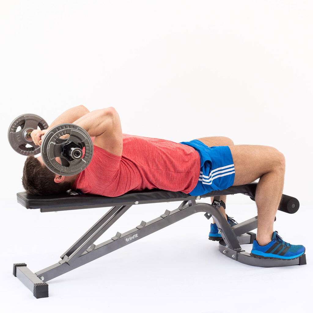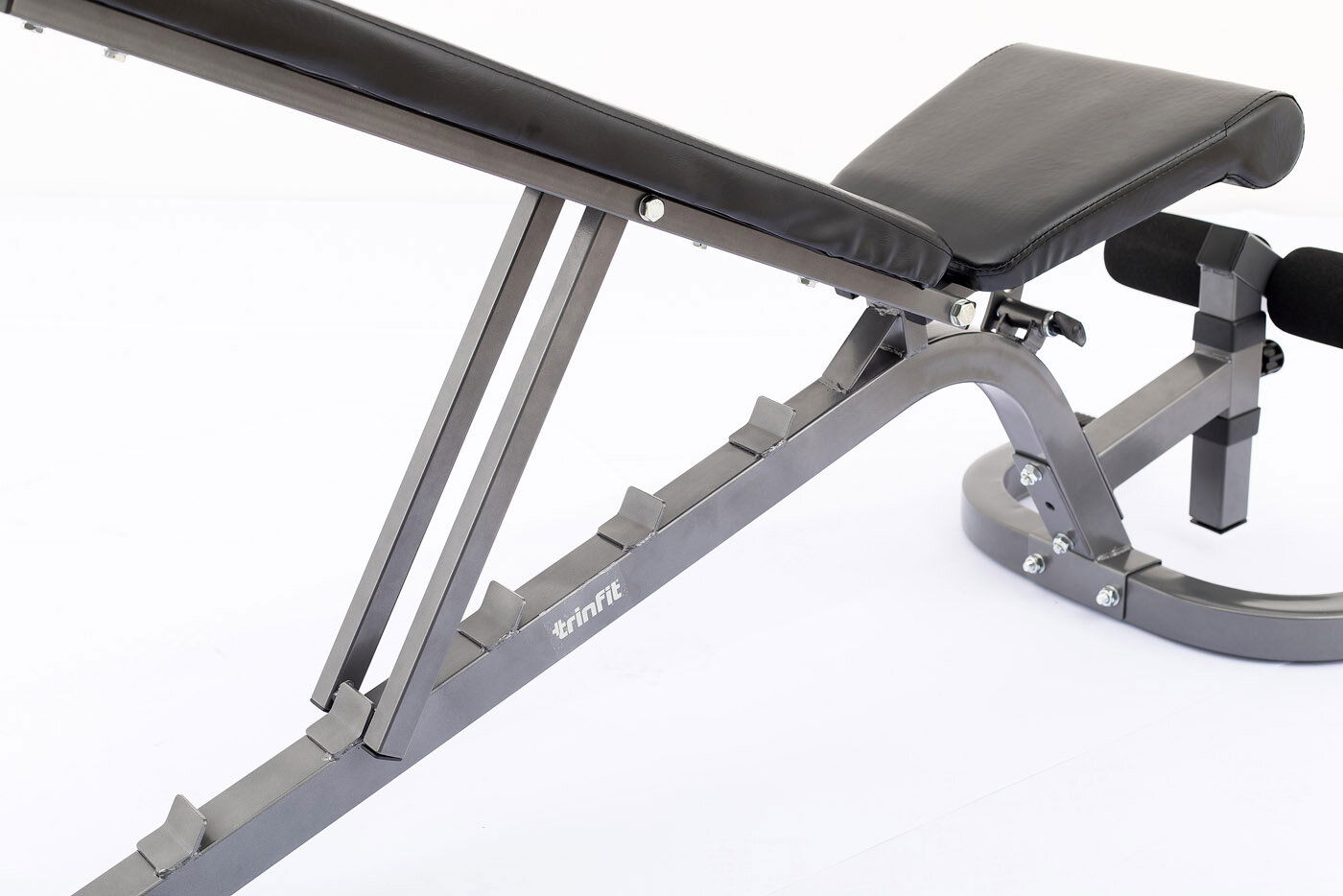 - lavica má praktické polohovateľné opierky na nohy, ktoré využijete pri negatívnom sklone lavice