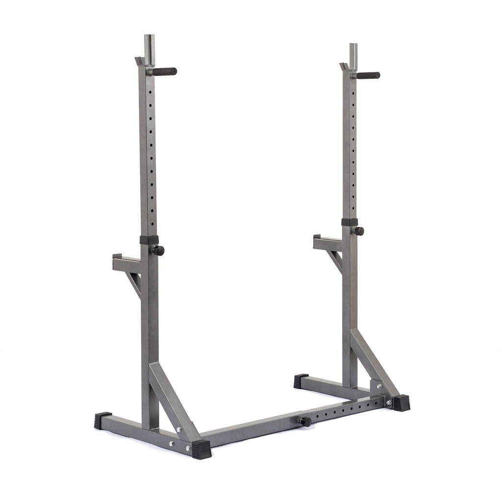 - stojan má 13 výškových polôh na odloženie činky (rozsah 85 až 145 cm) a 10 polôh nastavenia šírky stojanu (vnútorné rozpätie stojanu 60 až 106 cm, vonkajšie rozpätie 70 až 116 cm), umožňuje prispôsobenie vlastnej činke a postave