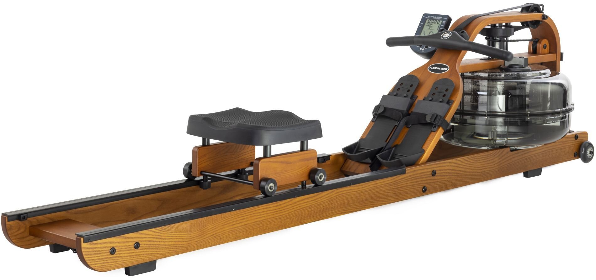 Veslovací trenažér s vodným odporom profesionálne nastaviteľné nášľapy LCD displej, bluetooth pre aplikácie luxusný drevený design nosnosť 150 kg, záruka 2 roky + 5 rokov na rám a doživotná na vodný pohon, servis doma