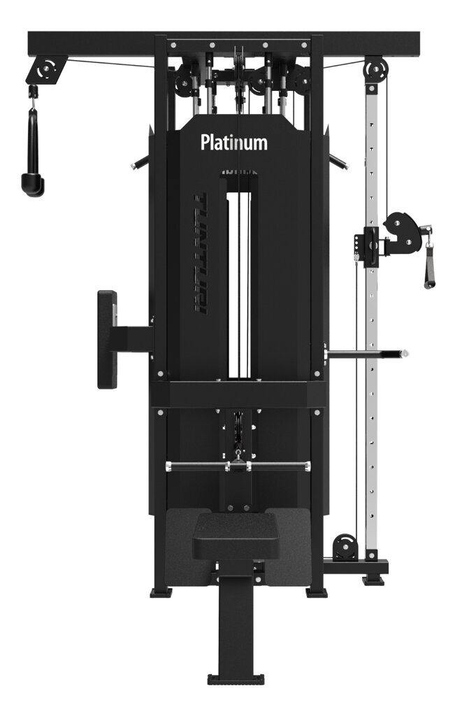 TUNTURI PLATINUM Multi Station/4 Stations Selectorized V-series predstavuje špičkovo navrhnutú multifunkčnú vežu pre profesionálny tréning. Štyri samostatné stanovištia – horná kladka s opierkou, horná kladka so sedákom, veslovanie v sede, nastaviteľná protismerná kladka – poskytujú komplexné posilnenie všetkých svalových skupín. Vďaka oddeleným záťažovým blokom s hmotnosťou 4 x 100 kg je veža vhodná aj pre viacerých užívateľov naraz, čo z nej robí ideálnu voľbu do komerčných fitness centier.