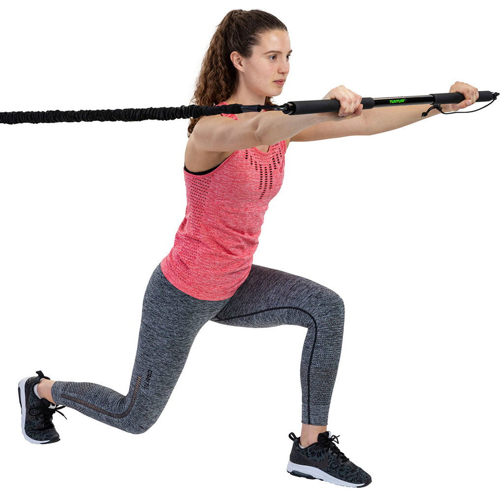 S Tunturi Resistance Trainer môžete pracovať na sile, vytrvalosti a flexibilite svojho tela pomocou odporového kábla. Sada sa skladá z odporového lanka, tyče, dverovej kotvy a bezpečnostného popruhu. Pomocou dverovej kotvy ľahko a rýchlo premeníte každú miestnosť na cvičebný priestor.