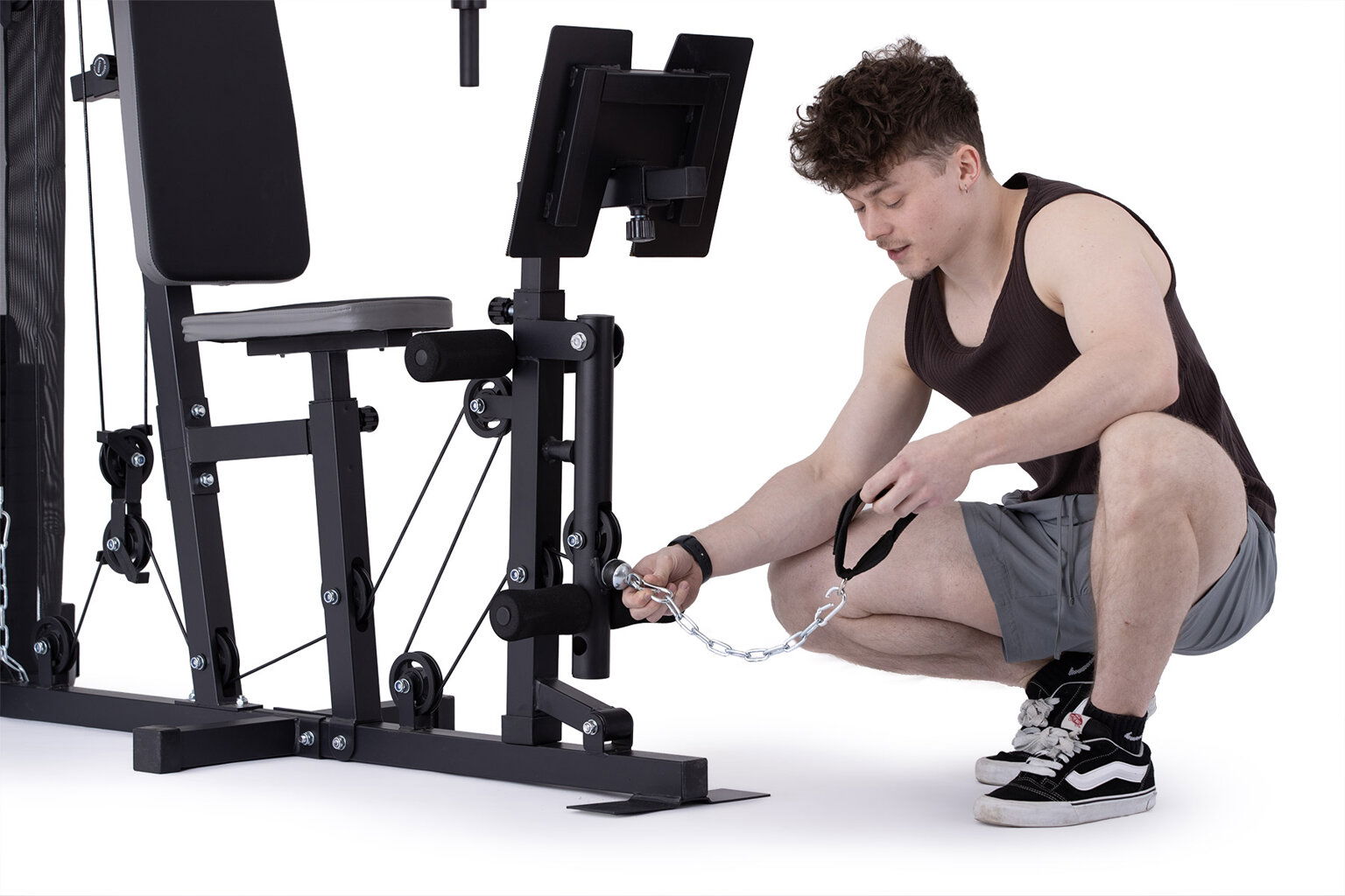 Multifunkčnosť jednotlivých stanovišť umožňuje precvičiť väčšinu svalových partií, veža disponuje jednoducho ovládateľným nastavením záťaže (pomocou kolíka).