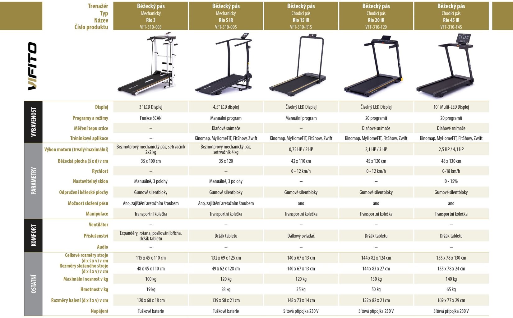 ZÁKLADNÉ VLASTNOSTI TRENAŽÉRA VIFITO Rio 250: