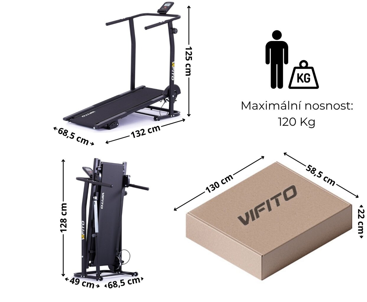 - Možnosť zloženia - bežecký trenažér je možné zložiť do úspornej polohy s rozmermi 49 x 62 x 128 cm, to zaručuje minimálne požiadavky na úložný priestor.