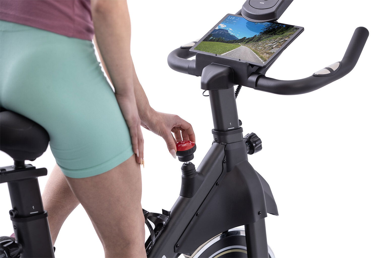 - Manuálna regulácia odporu prostredníctvom otočného regulátora a prítlačnej brzdy