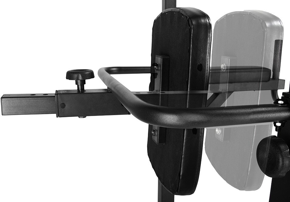 VIRTUFIT Adjustable Power Tower umožňuje široké spektrum cvikov: kľučky na bradlách, príťahy na hrazde, zdvíhanie nôh alebo kolien pre brucho a ďalšie varianty cvičenia. Konštrukcia je výškovo nastaviteľná v rozmedzí 149 až 225 cm a vďaka kompaktným rozmerom ju ľahko umiestnite do domácej posilňovne. Opierky a chrbtová podložka sú silne polstrované (5 cm) pre pohodlie aj pri intenzívnom cvičení. Pri vyššej záťaži môžete pridať záťažový opasok a zvýšiť náročnosť tréningu.