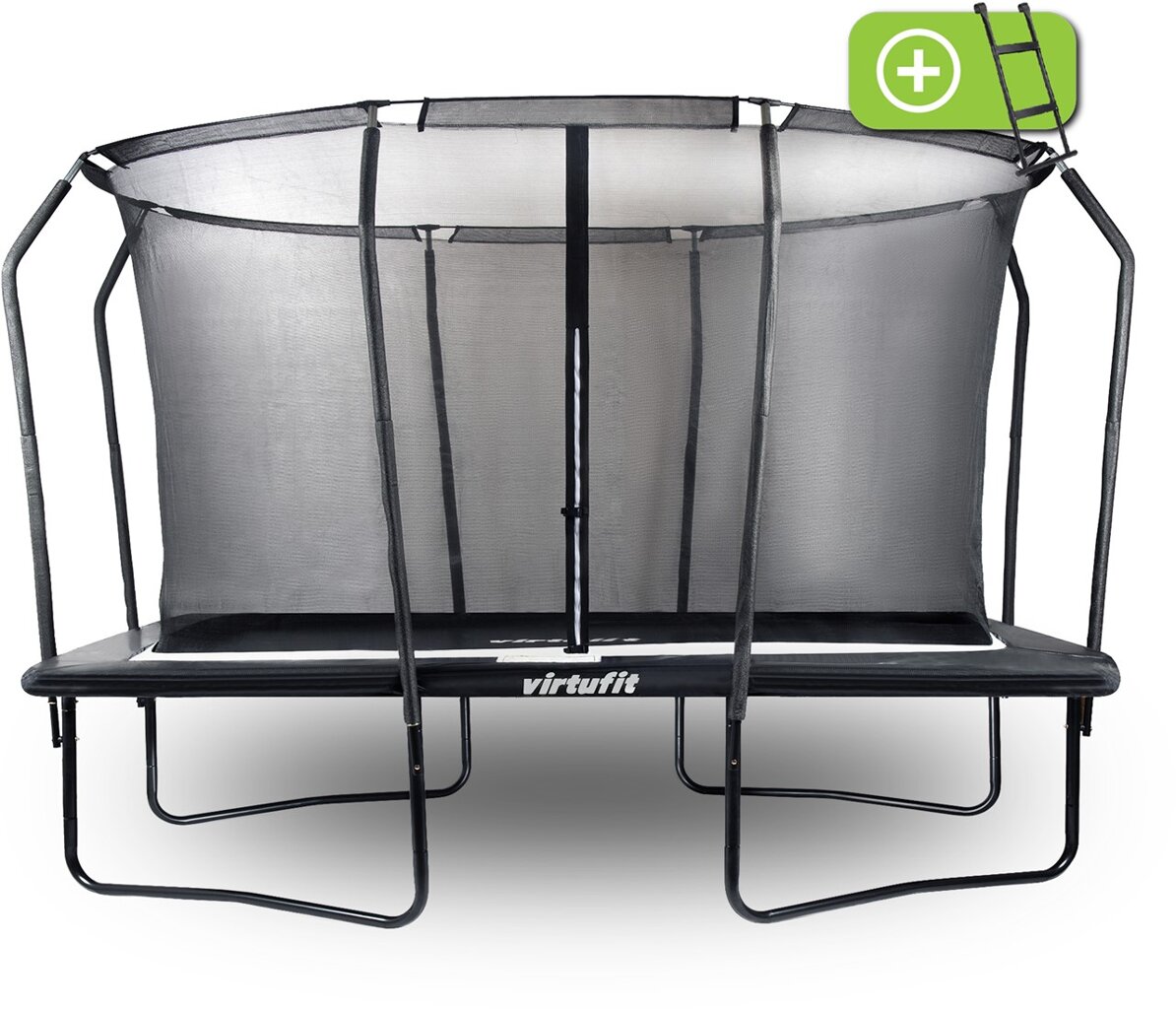 Trampolína VIRTUFIT Premium s ochrannou sieťou Čierna 244 x 366 cm ponúka špičkové spracovanie, vysokú stabilitu a bezpečné zázemie pre každodenné skákanie. Vďaka obdĺžnikovému prevedeniu poskytuje dostatok priestoru pre pohodlný odraz a prirodzenejší pohyb pri skákaní. Trampolína je vhodná pre deti aj dospelých a vďaka nosnosti až 150 kg si na nej môžu aktívnu zábavu užiť aj starší užívatelia. Skákanie navyše nie je len o zábave, ale aj o pohybe, koordinácii a celkovom zlepšení kondície.