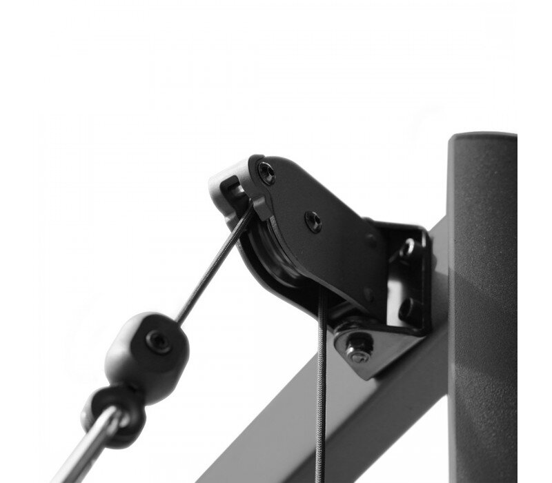 Masívna konštrukcia rámu zaisťuje dlhodobú životnosť trenažéra a všetky kladky sú osadené profesionálnymi guličkovými ložiskami pre bezúdržbové a bezproblémového používania.