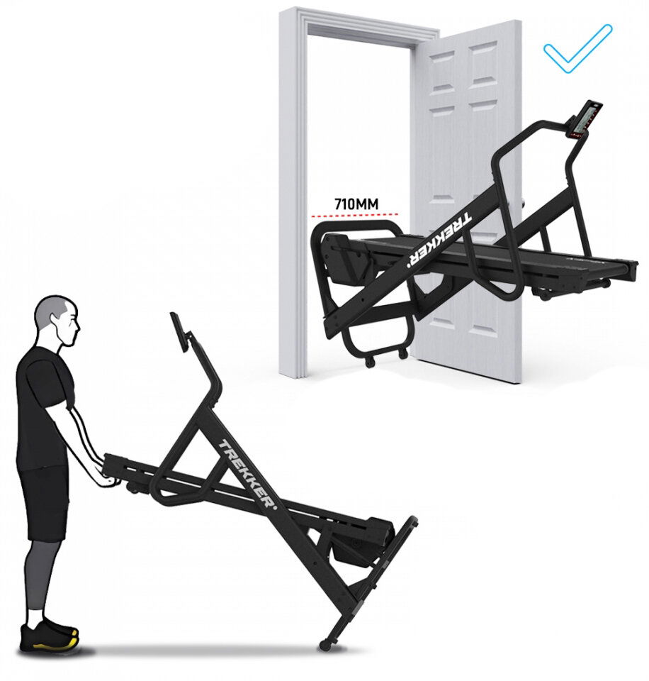 - TREK MODE - Režim s 27% sklonem, 10 nastavitelných rychlostních zón a omezení rychlosti do 6 km/h pro bezpečný trénink. Tento režim je ideální pro spalování kalorií a mírně náročný trénink nohou.